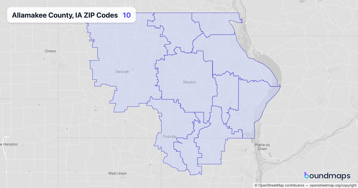 Download KML Boundary File for Allamakee County, IA ZIP Codes