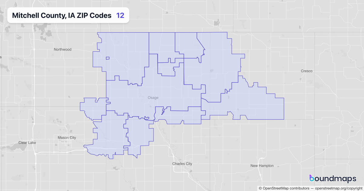 Download KML Boundary File for Mitchell County, IA ZIP Codes