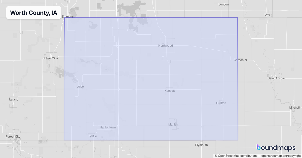 Download KML Boundary File for Worth County, IA