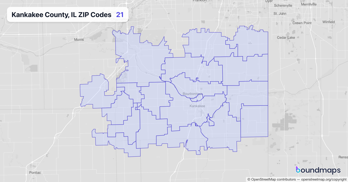 Download KML Boundary File for Kankakee County, IL ZIP Codes