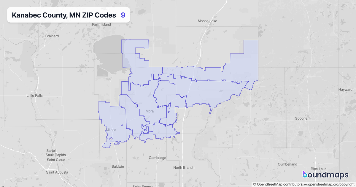 Download KML Boundary File for Kanabec County, MN ZIP Codes