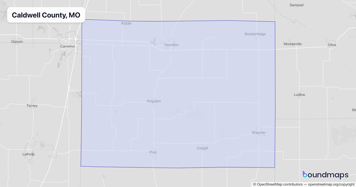 Download KML Boundary File for Caldwell County, MO