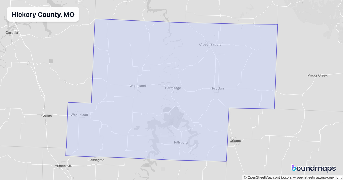 Download KML Boundary File for Hickory County, MO
