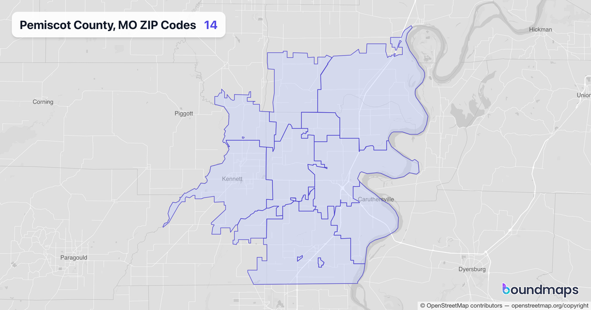 Download KML Boundary File for Pemiscot County, MO ZIP Codes