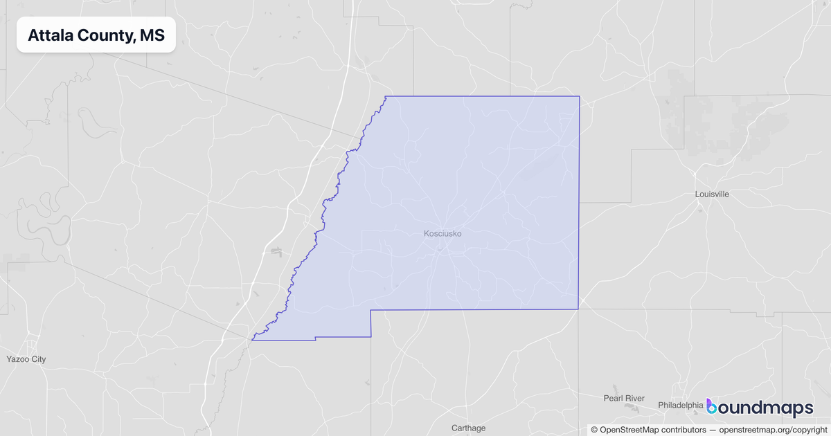 Download KML Boundary File for Attala County, MS