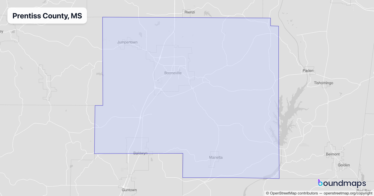 Download KML Boundary File for Prentiss County, MS