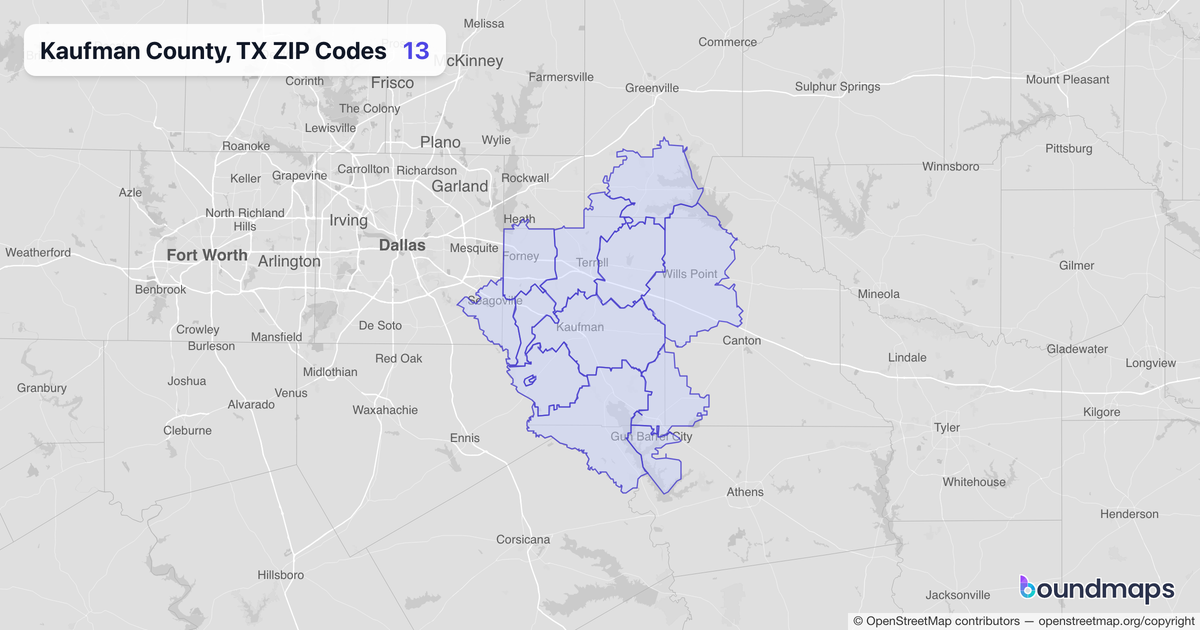 Download KML Boundary File for Kaufman County, TX ZIP Codes