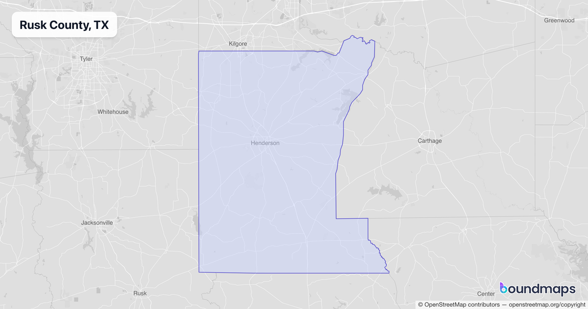 Download KML Boundary File for Rusk County, TX